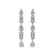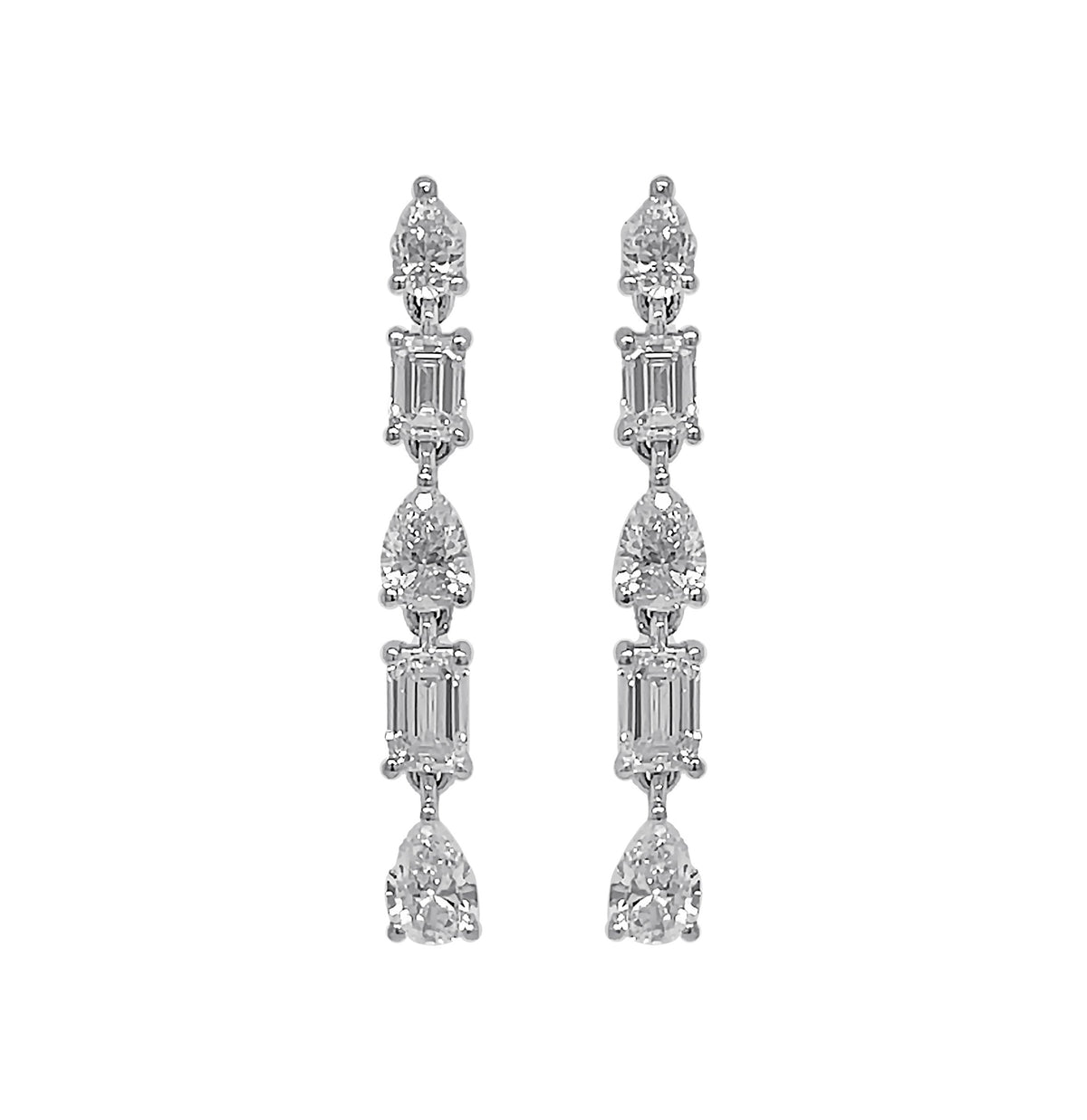 18kt white gold prong set emerald and pear shaped diamond dangling earring.