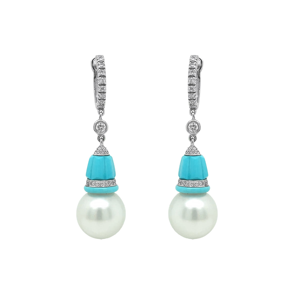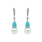 18kt White Gold Turquoise, Pearl and Diamond Earrings