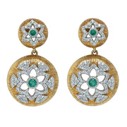 18kt Yellow and White Gold Diamond and Green Emerald Dangling Earrings