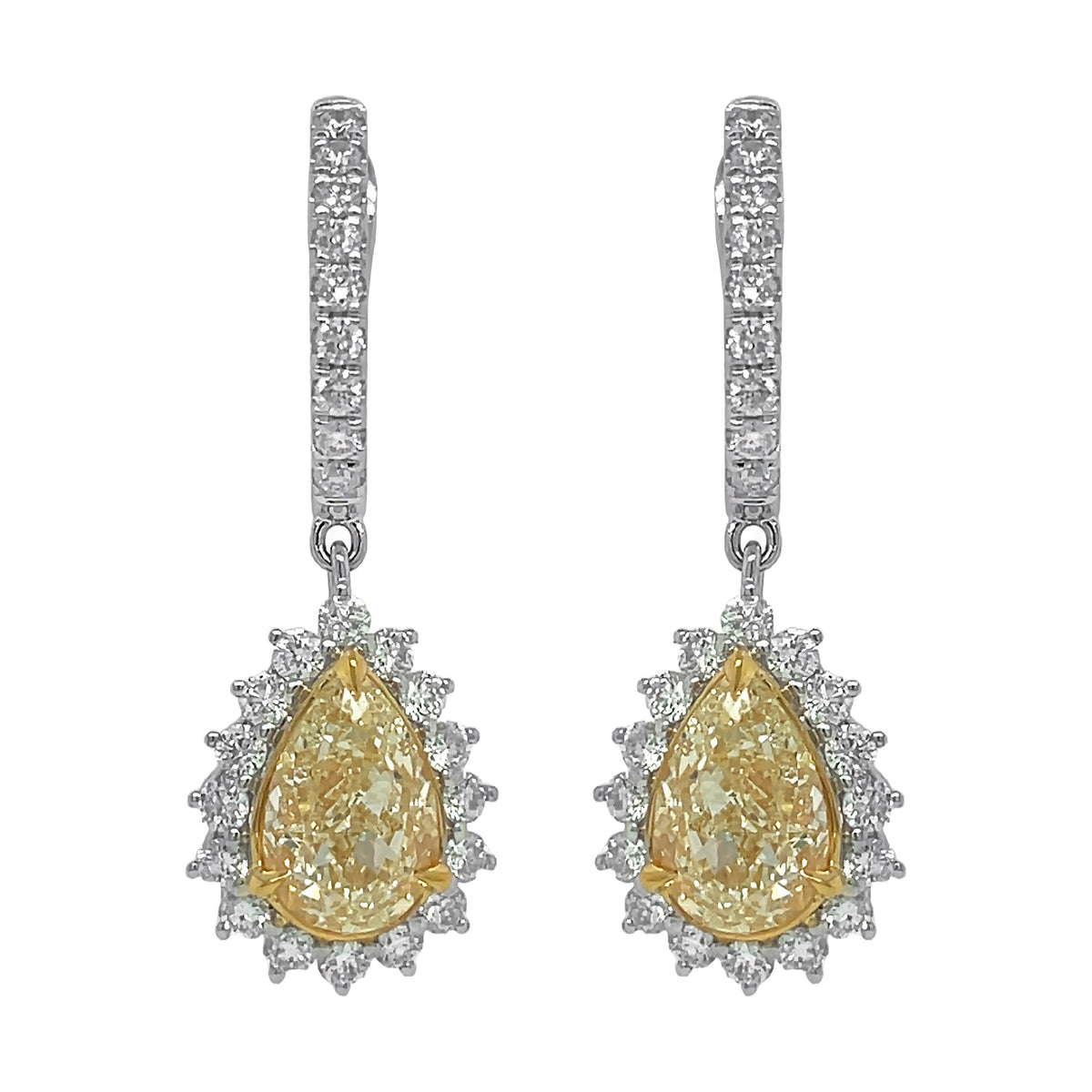 18kt Yellow and White Gold Diamond And Yellow Diamond Dangling Earrings
