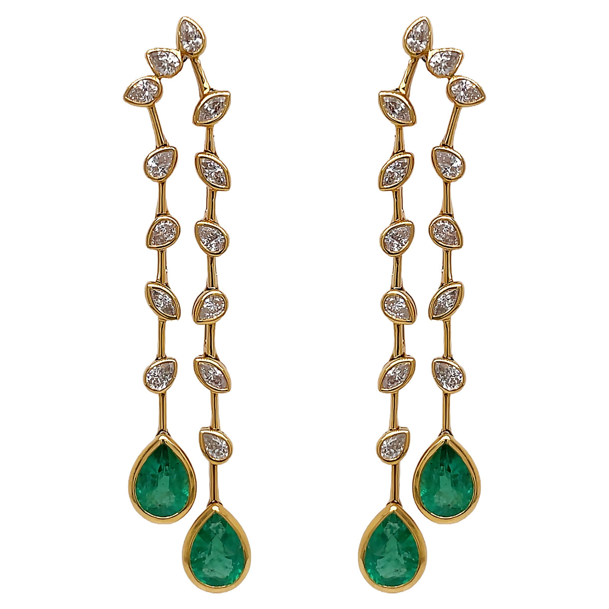 18kt Yellow Gold Diamond and Green Emerald Earrings.