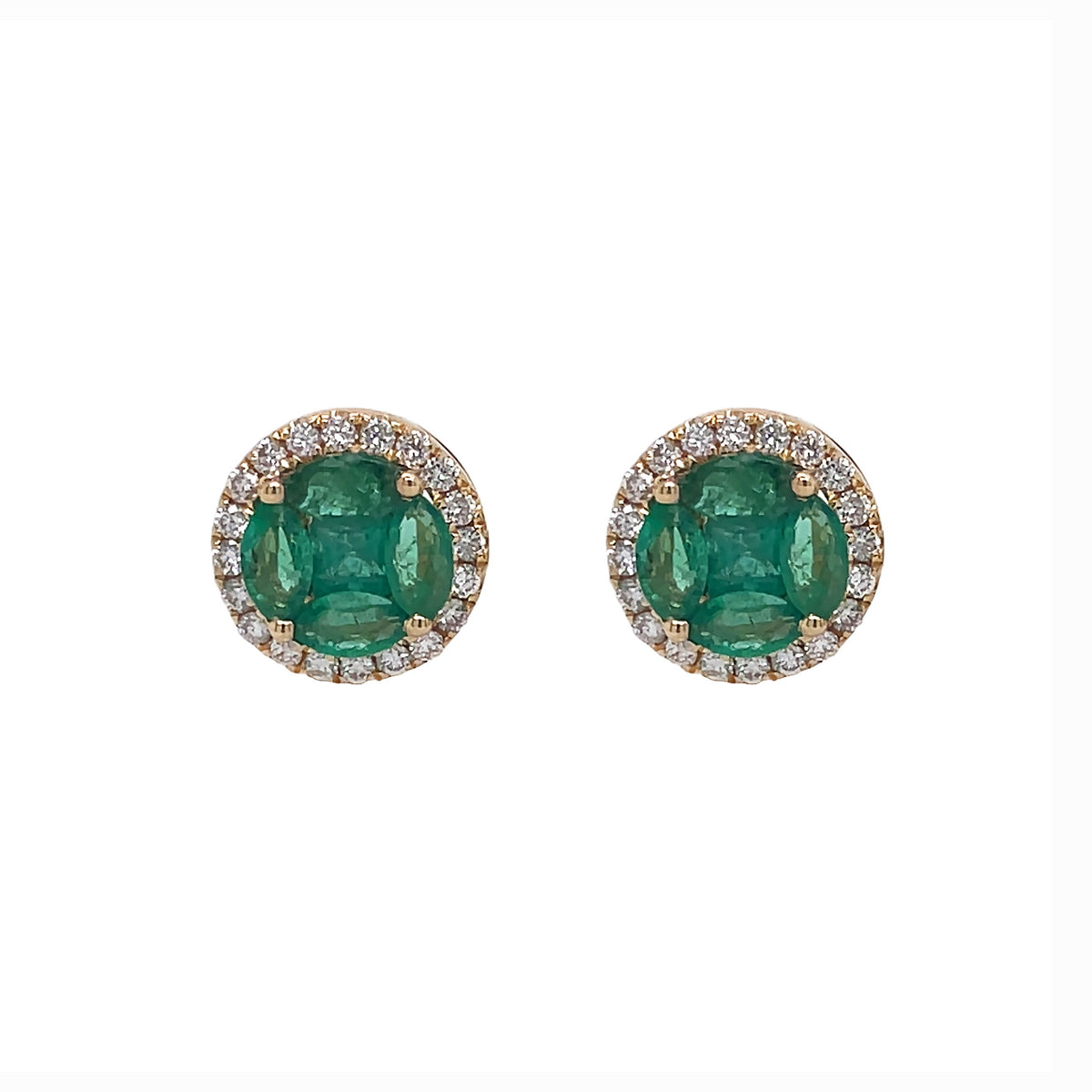 18kt Yellow Gold Diamond and Green Emerald Earrings