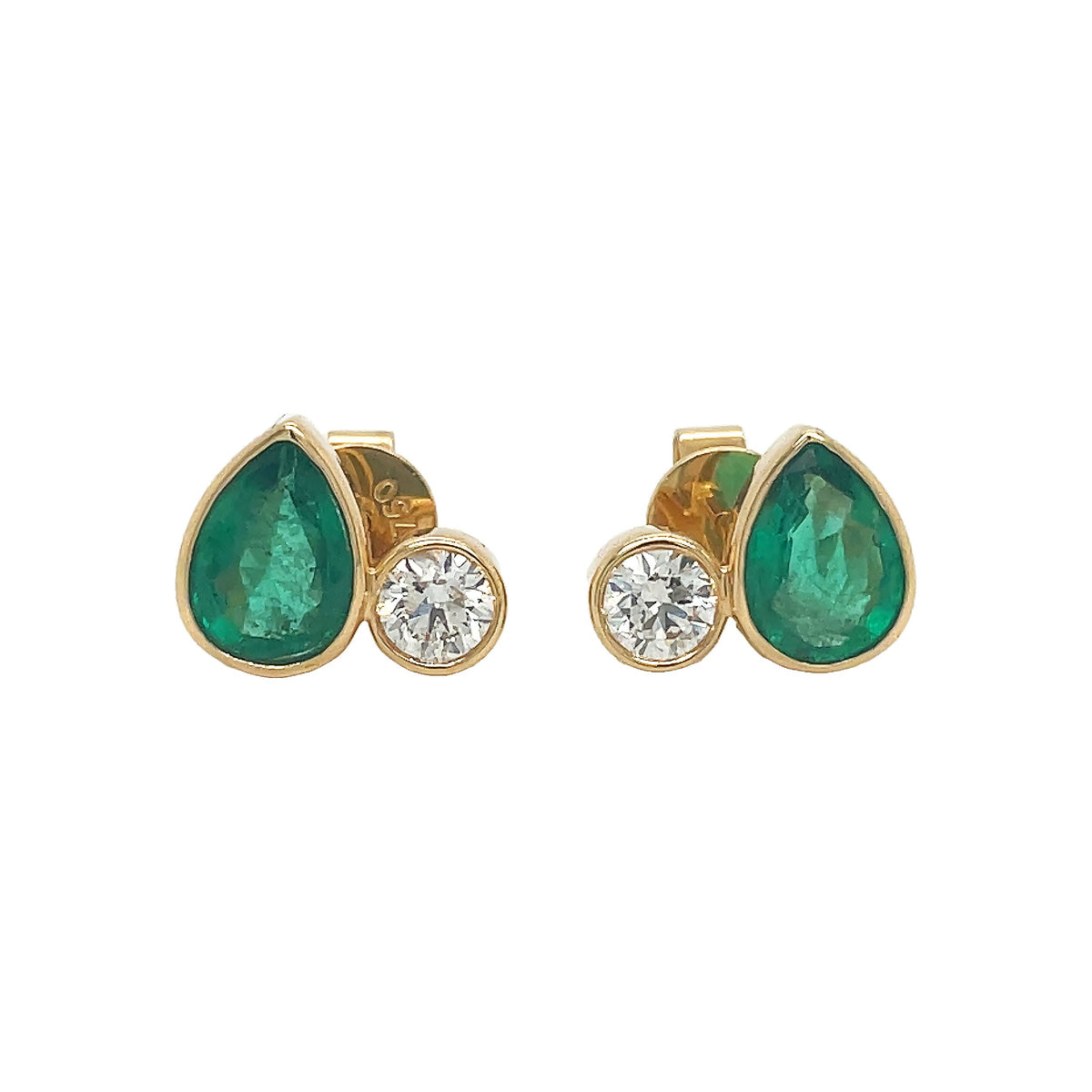 18kt Yellow Gold Diamond and Green Emerald Earrings