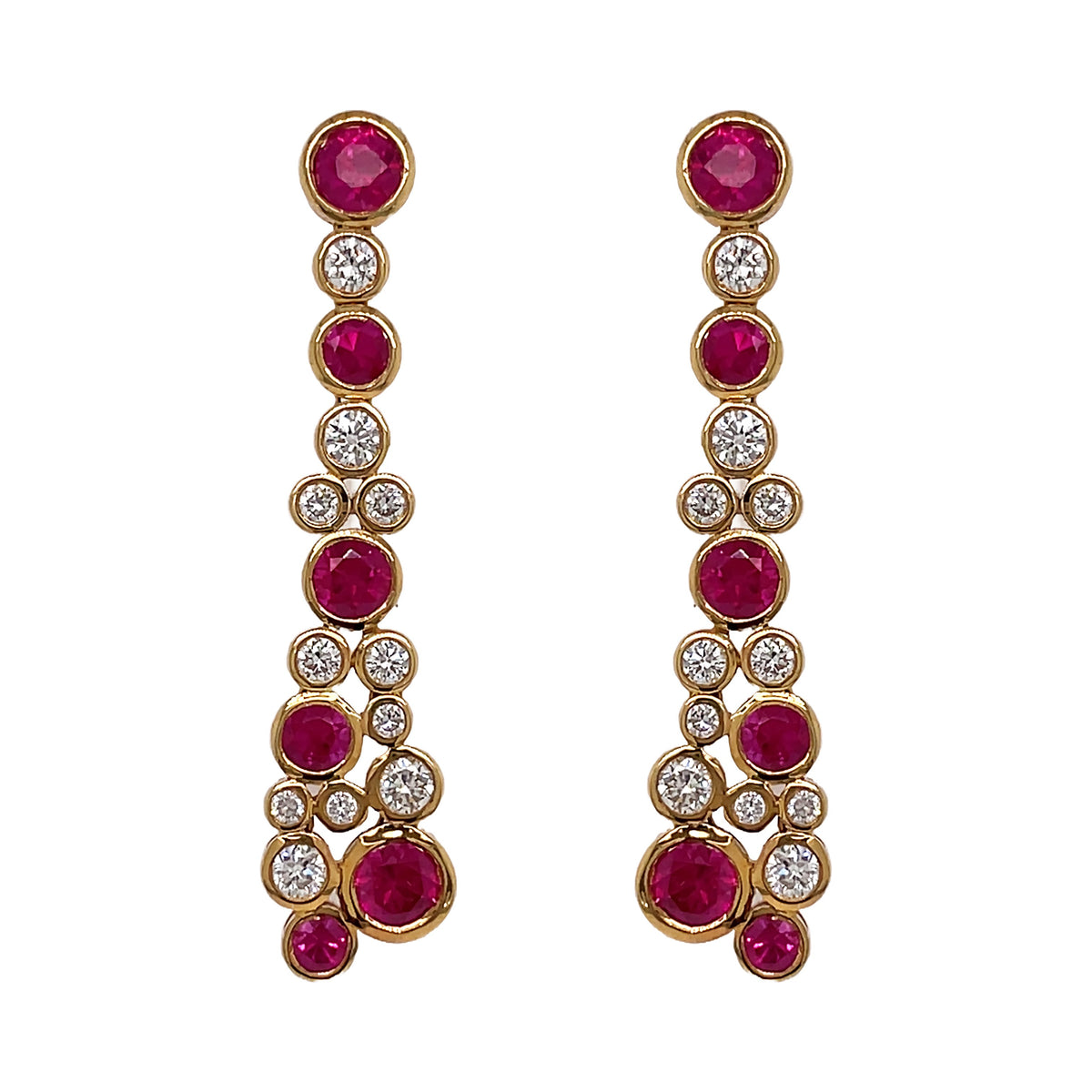 18kt Yellow Gold Diamond And Ruby Earrings.