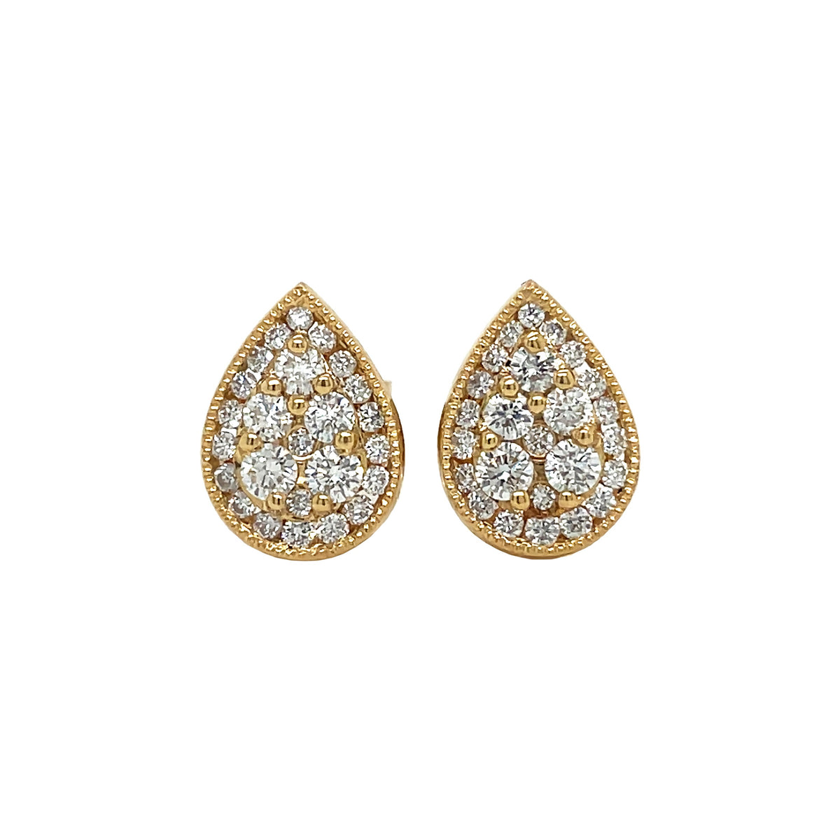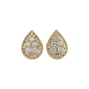 18kt yellow gold micro prong set round brilliant diamond tear drop earrings.