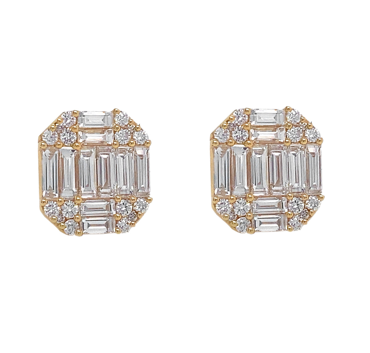 18kt yellow gold micro pave set baguette and round brilliant diamond cluster earring.