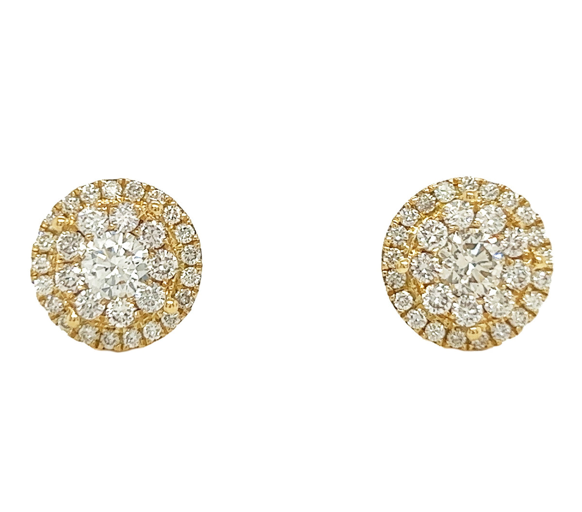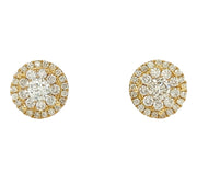 18kt yellow gold micro pave set round brilliant diamond cluster earrings.
