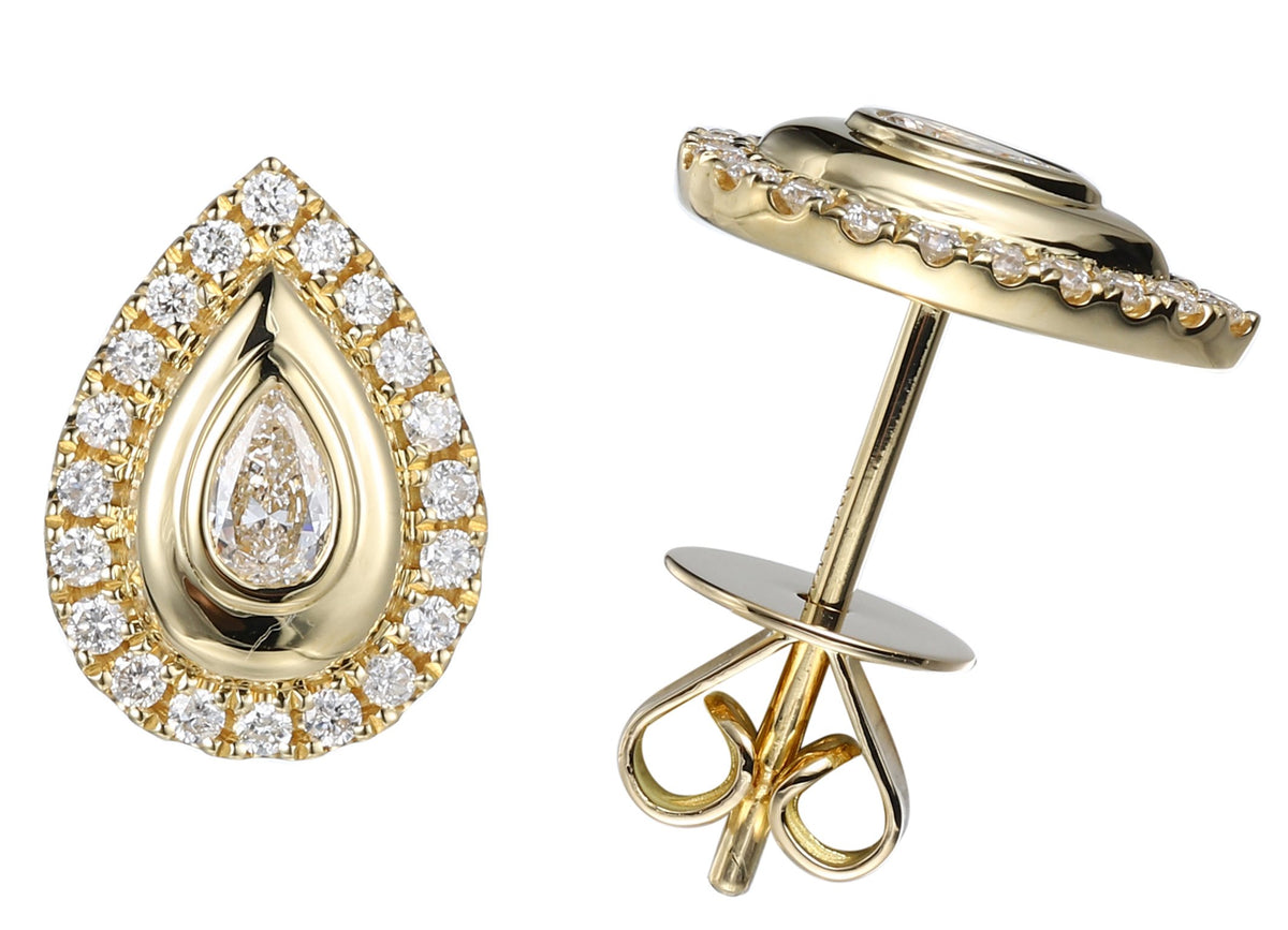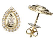 18kt yellow gold micro prong set pear and round brilliant diamond cluster earrings.
