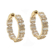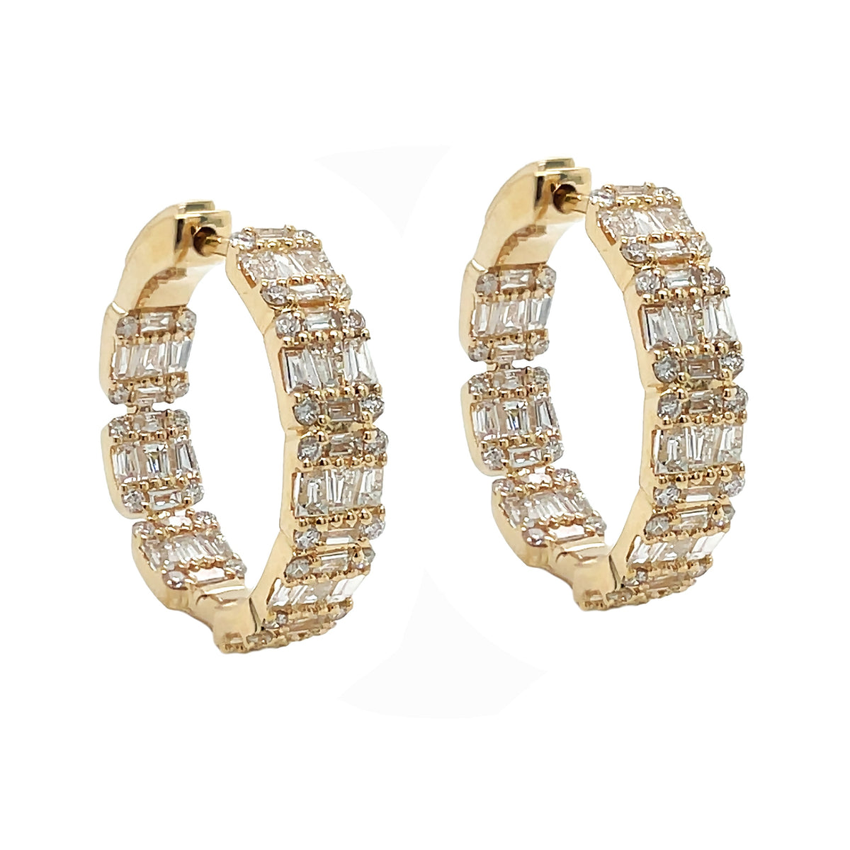 18kt yellow gold baguette and round brilliant diamond multi-cluster inside-out hoops.