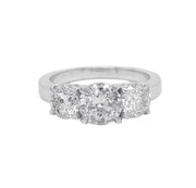18kt white gold 4 prong set round brilliant diamond 3 stone ring