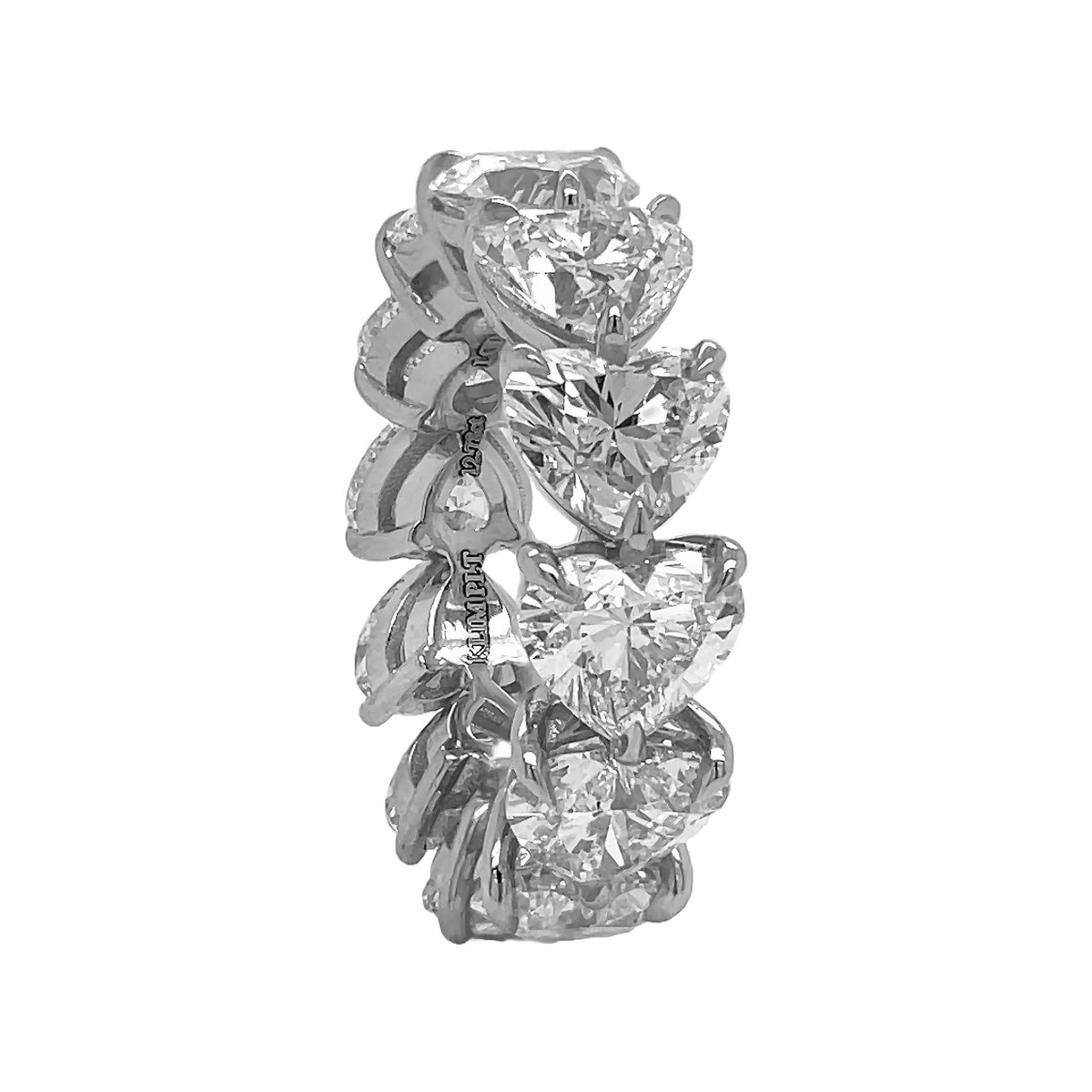 Platinum mutual prong set IGI certified laboratory grown radiant cut diamond eternity band.
