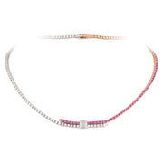 18kt White and Rose Gold Diamond and Pink Sapphire Tennis Necklace