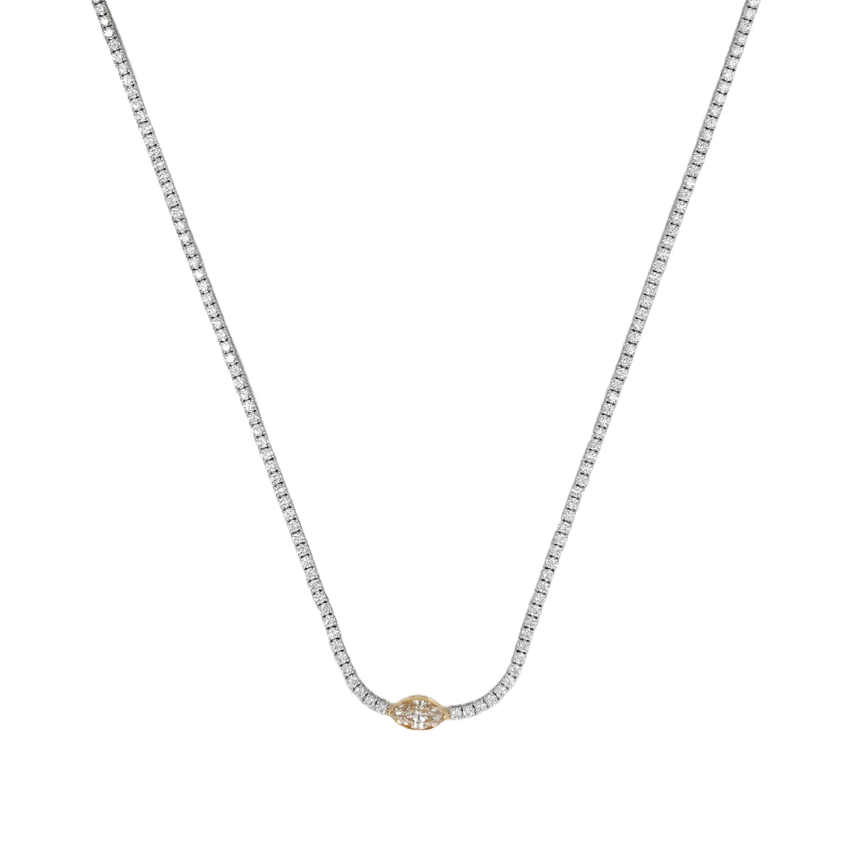 18kt White and Yellow Gold Diamond and Yellow Diamond Tennis Necklace
