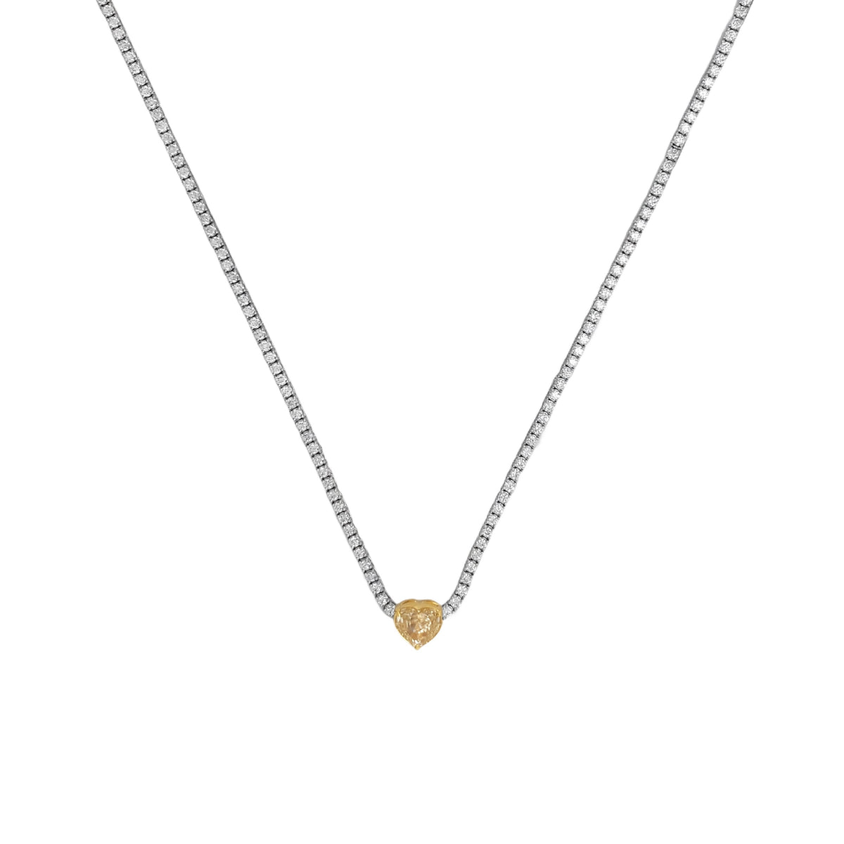 18kt White Gold Diamond and Yellow Diamond Tennis Necklace