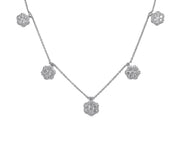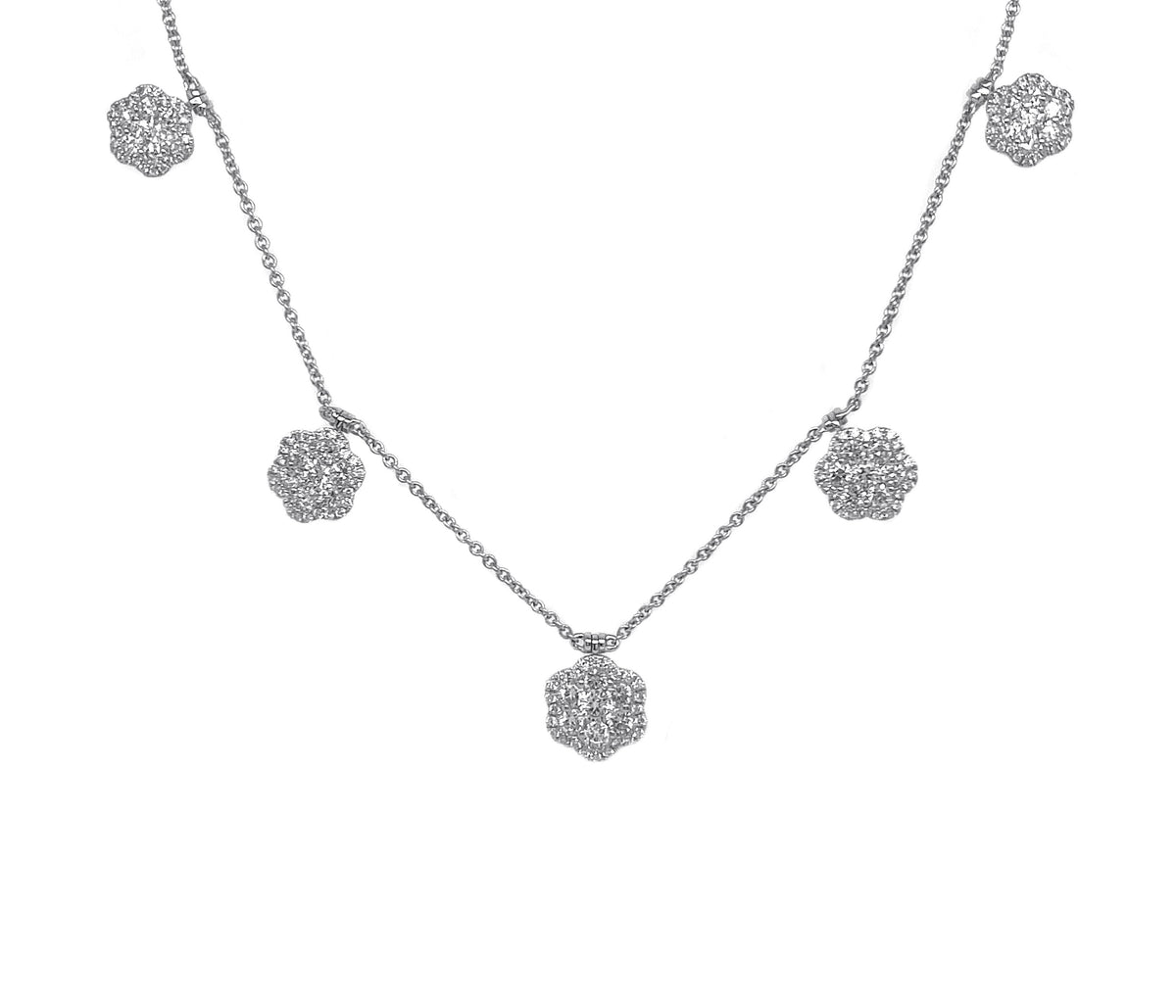 18kt white gold micro pave and invisible set round brilliant diamond multi-cluster necklace.