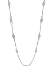 18kt white gold prong and invisible set baguette, princess, marquise and round brilliant diamond multi-cluster long tennis necklace.