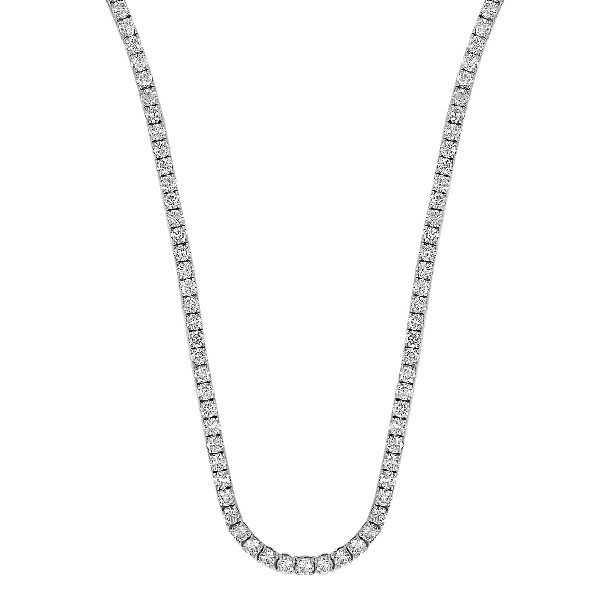 18kt white gold 4 prong set round brilliant diamond tennis necklace.