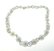 18kt white gold micro pave set round brilliant diamond link and white south sea pearl necklace. 1722 Round diamonds = 13.83ctw 21 south sea pearls = 12.8-13.9mm size 16