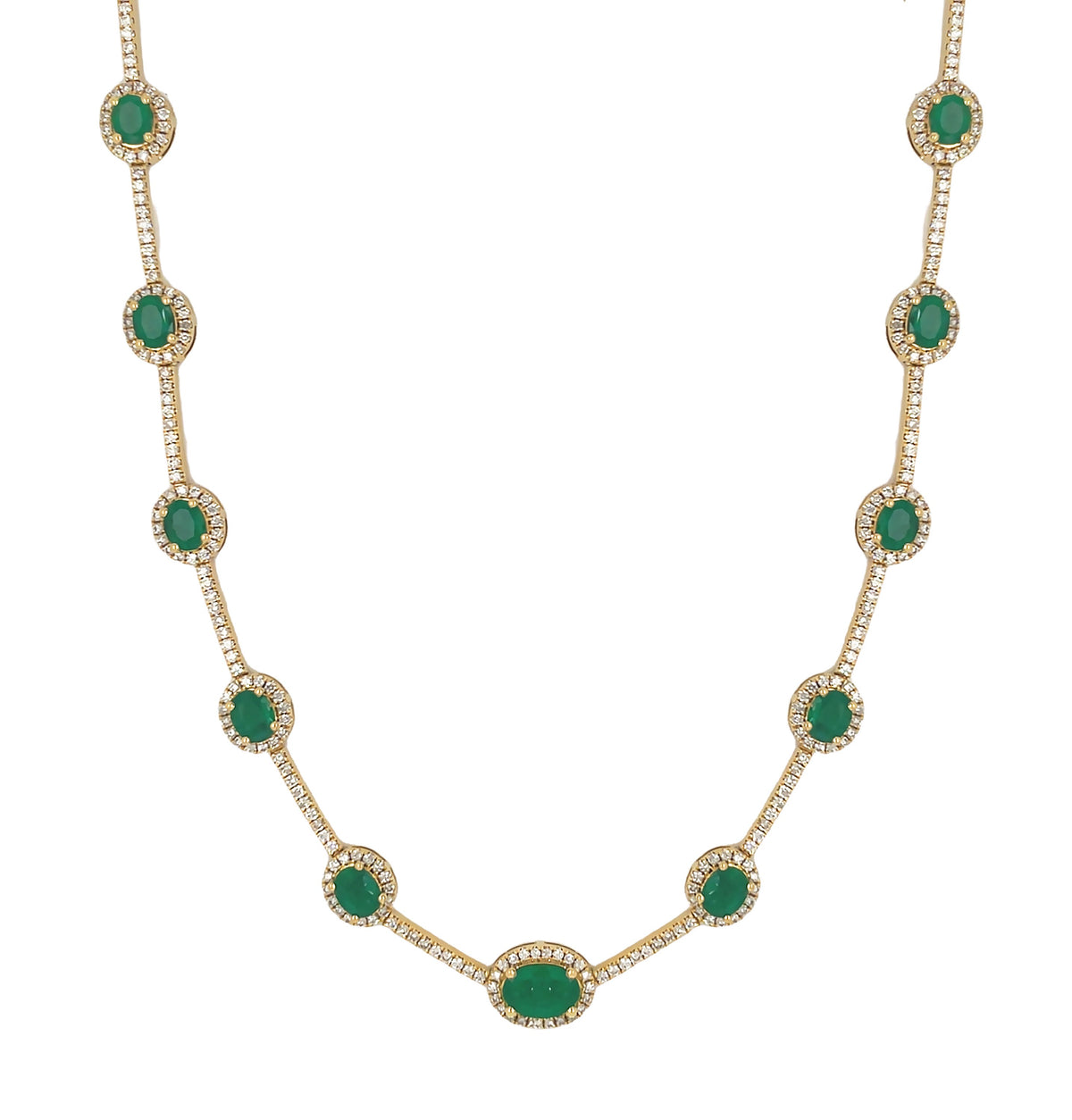 18kt Yellow Gold Diamond and Green Emerald Diamond Necklace