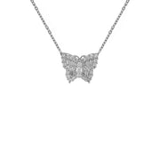 18kt white gold channel set baguette and prong set round brilliant diamond butterfly pendant.
