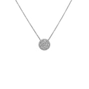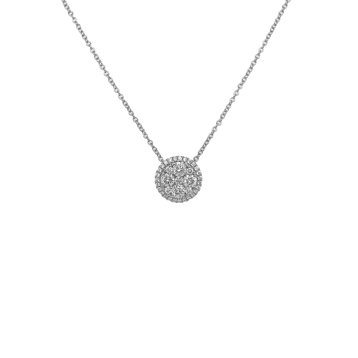 18kt white gold micro prong set round brilliant diamond cluster pendant.