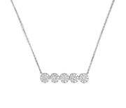 18kt white gold micro prong set round brilliant diamond 5 cluster pendant.