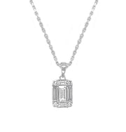 18kt white gold micro prong set baguette and round brilliant diamond cluster pendant.
