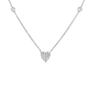 18kt white gold micro pave set baguette and round brilliant diamond heart pendant.