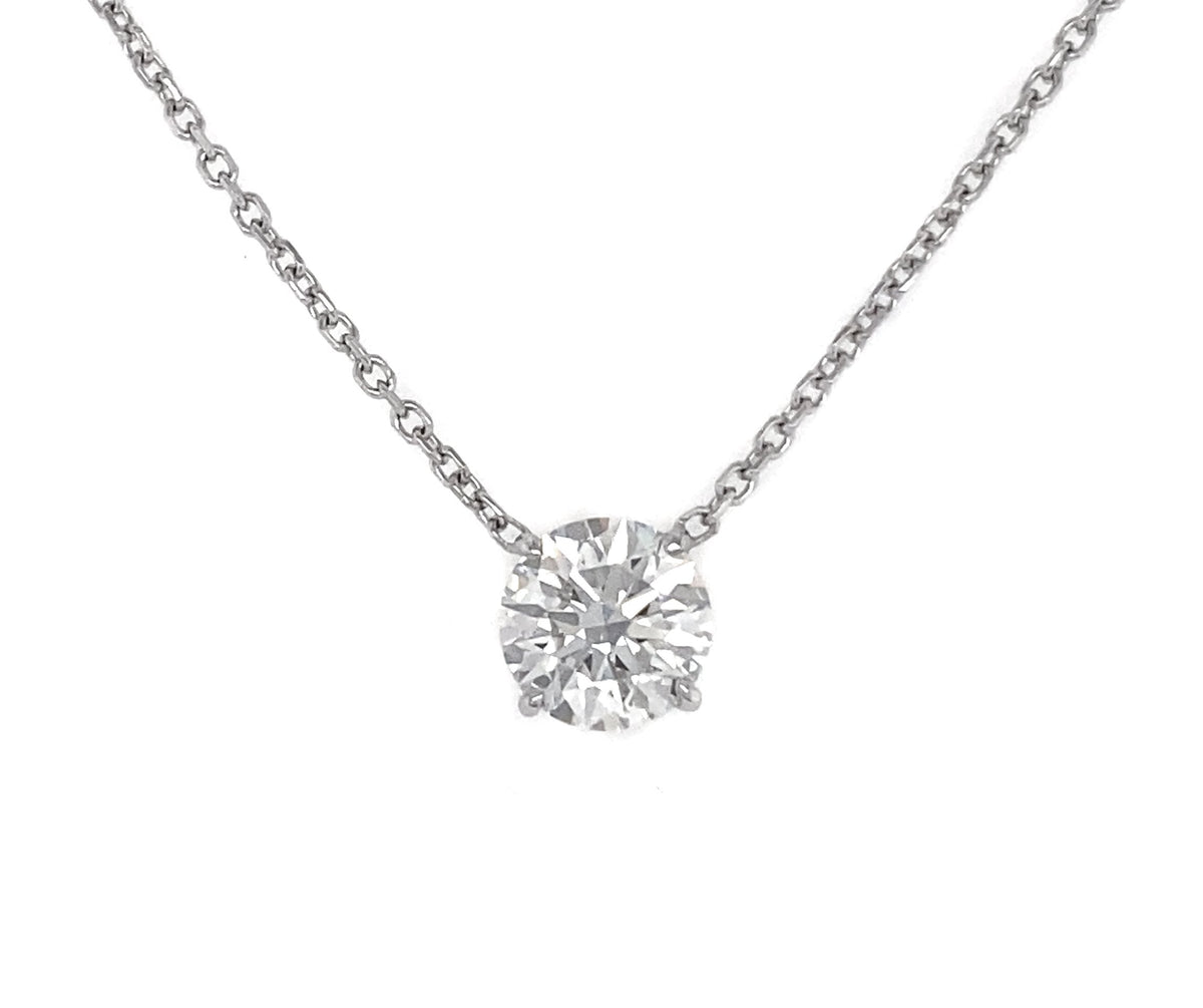 18kt white gold 4 prong set GIA certified laboratory grown round brilliant diamond pendant with cable link chain.