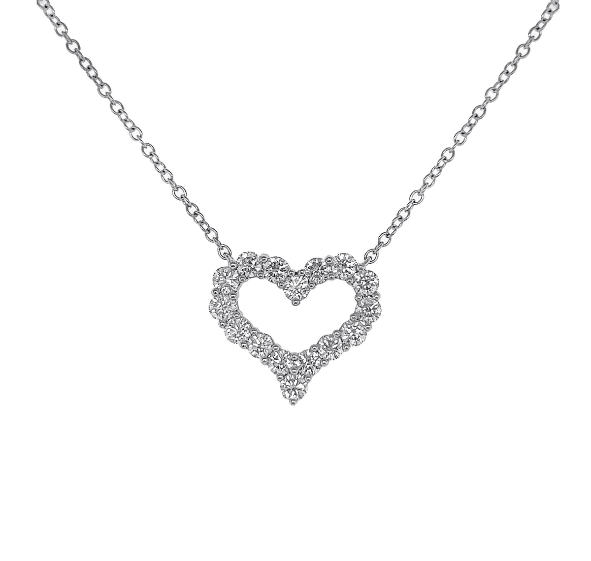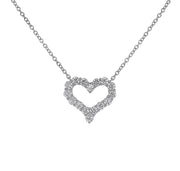18kt white gold mutual prong set round brilliant diamond heart pendant.