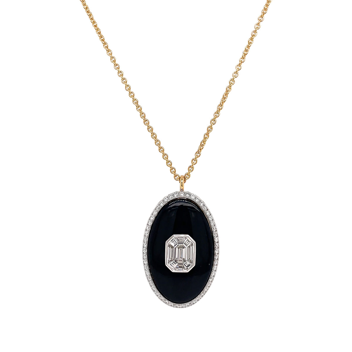 18kt Yellow and White Gold Diamond Onyx Pendant.