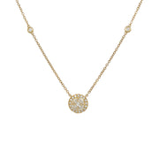 18kt yellow gold invisible set marquise, princess and round brilliant diamond cluster pendant.