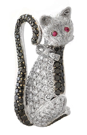 18kt White Gold Diamond,Black Diamond And Pink Sapphire Pendant/Pin