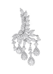 18kt white gold micro prong and prong set round brilliant diamond, marquise and pear shaped diamond dangling pin.