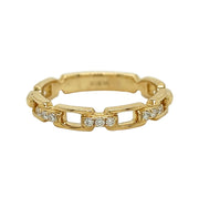 14kt yellow gold micro prong set round brilliant diamond link ring.