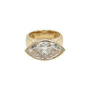 14kt yellow gold bezel set IGI certified laboratory grown marquise diamond ring.