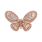 18kt rose gold prong set baguette and round brilliant diamond butterfly ring.