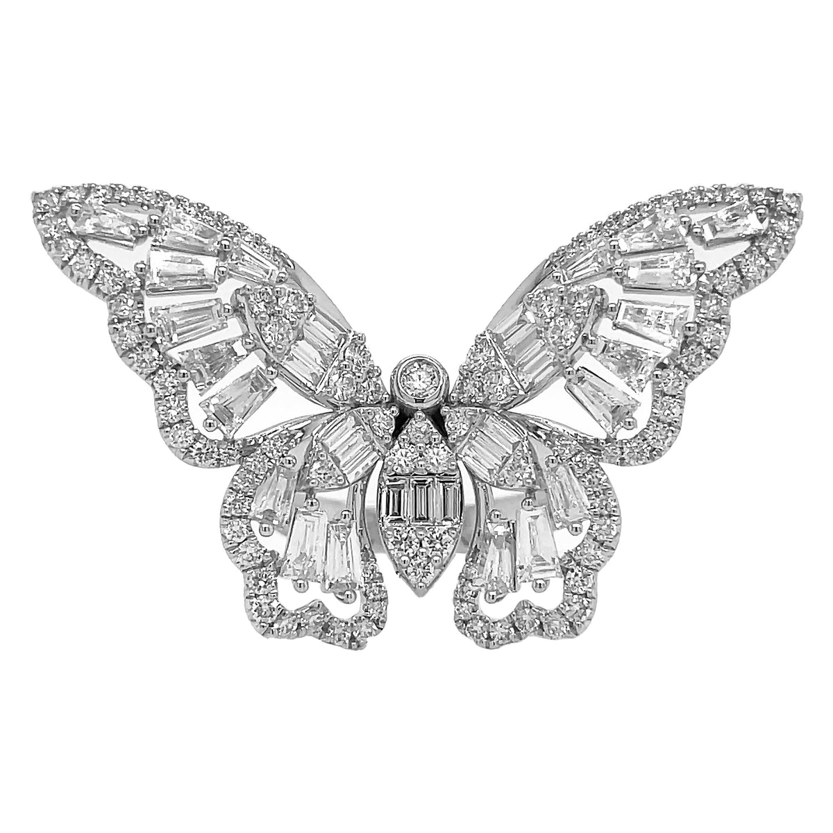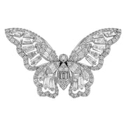 18kt white gold micro prong set baguette and round brilliant diamond butterfly ring.