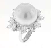 18kt White Gold Diamond and Pearl Ring