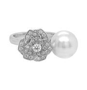 18kt White Gold Diamond and Pearl Ring