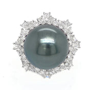 18kt White Gold Diamond and Pearl Ring