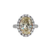 Set into an 18kt white gold micro prong set round brilliant diamond halo setting