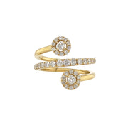 18kt yellow gold micro prong set round brilliant diamond multi-row ring.
