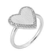 18kt white gold micro prong set round brilliant diamond heart ring.