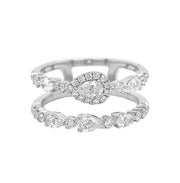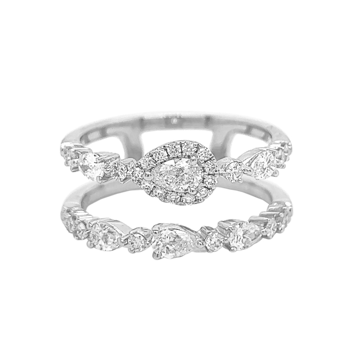 18kt white gold 3 prong set pear and round brilliant diamond 2-row ring.
