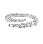 18kt white gold channel set baguette and micro prong set round brilliant diamond 2-row ring.