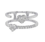 18kt white gold micro prong set round brilliant diamond 2-row heart ring.