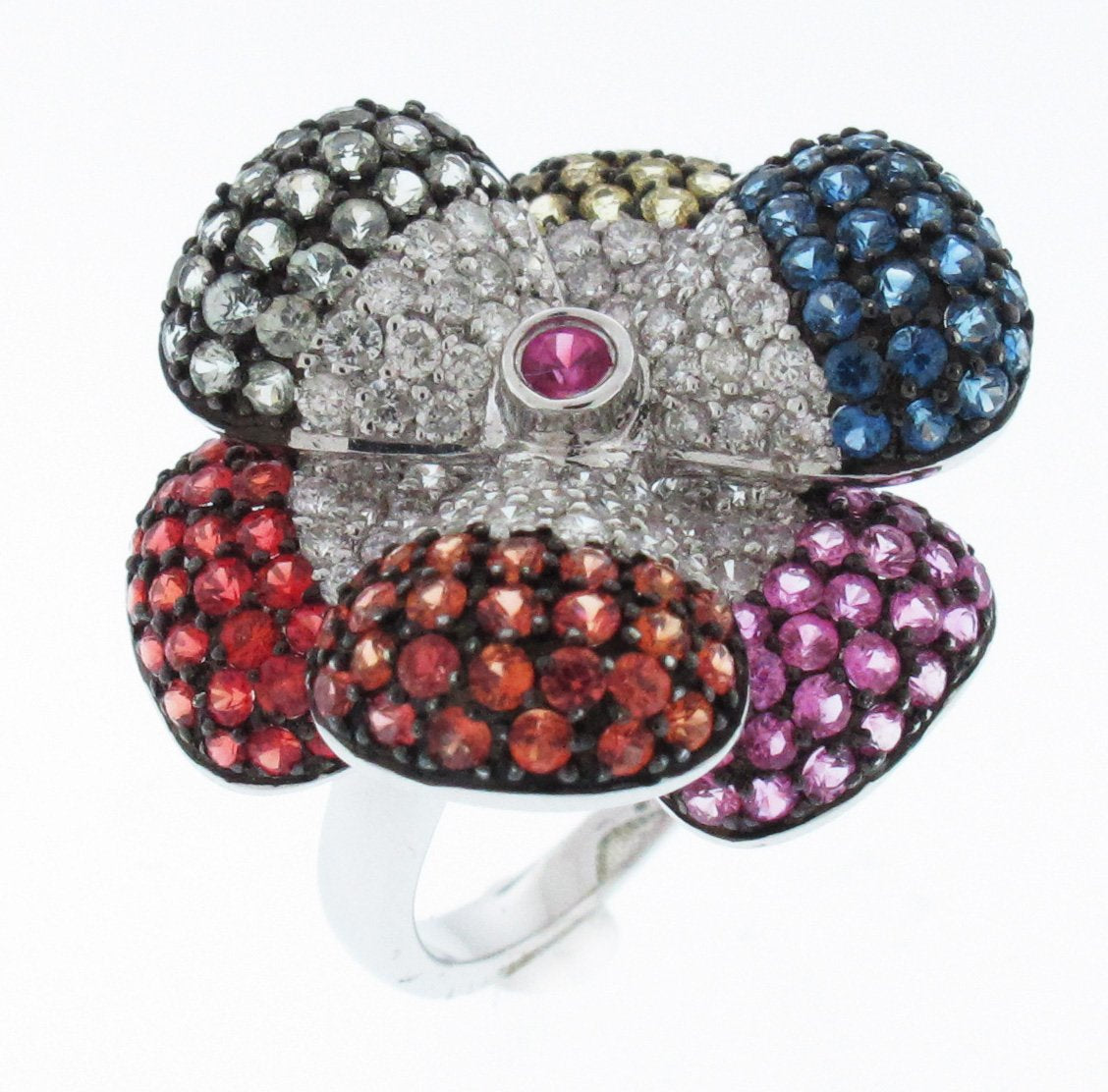 18kt White Gold Multi Color Sapphire Ring