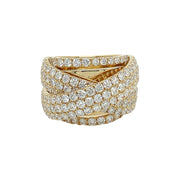 18kt yellow gold micro prong set round brilliant diamond multi-row criss-cross ring.