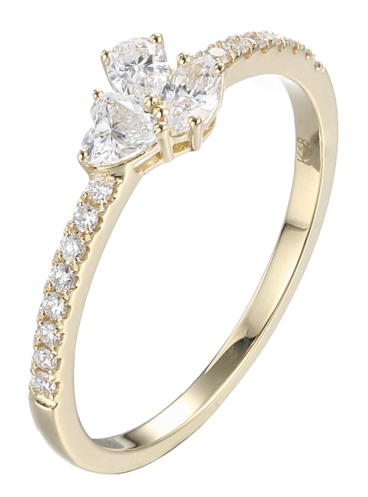18kt yellow gold micro prong set marquise, pear, heart and round brilliant diamond ring.
